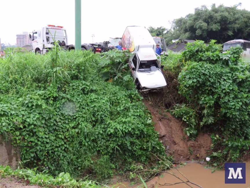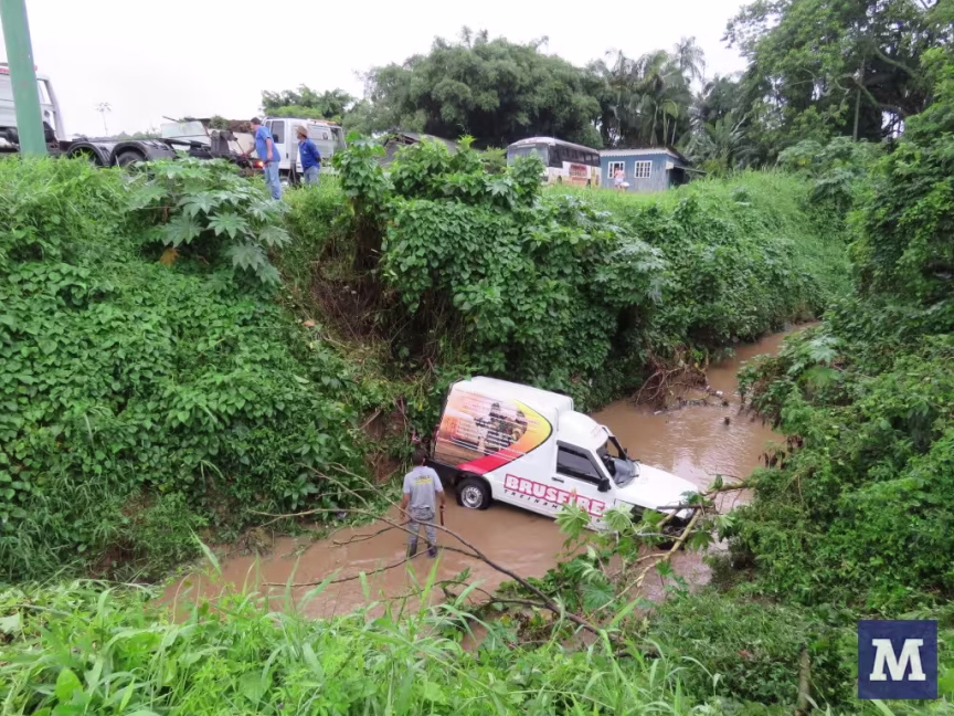O motorista da Brusfire Treinamentos, Acácio dos Anjos de Jesus, 23 anos, caiu com o carro da empresa, um Fiorino, em um ribeirão às margens da avenida Bepe Roza, a Beira Rio, na tarde desta terça-feira, 16.