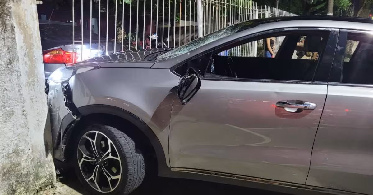 A confusão começou após o homem, que estava conduzindo um veículo, modelo KIA Sportage, bater no portão de uma garagem e danificar outro carro que estava dentro da casa.