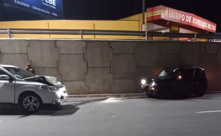 A colisão aconteceu próximo a ponte dos bombeiros e envolveu um Jeep Renegade e um Mitsubishi Outlander. O acidente não deixou feridos, apenas danos materiais.