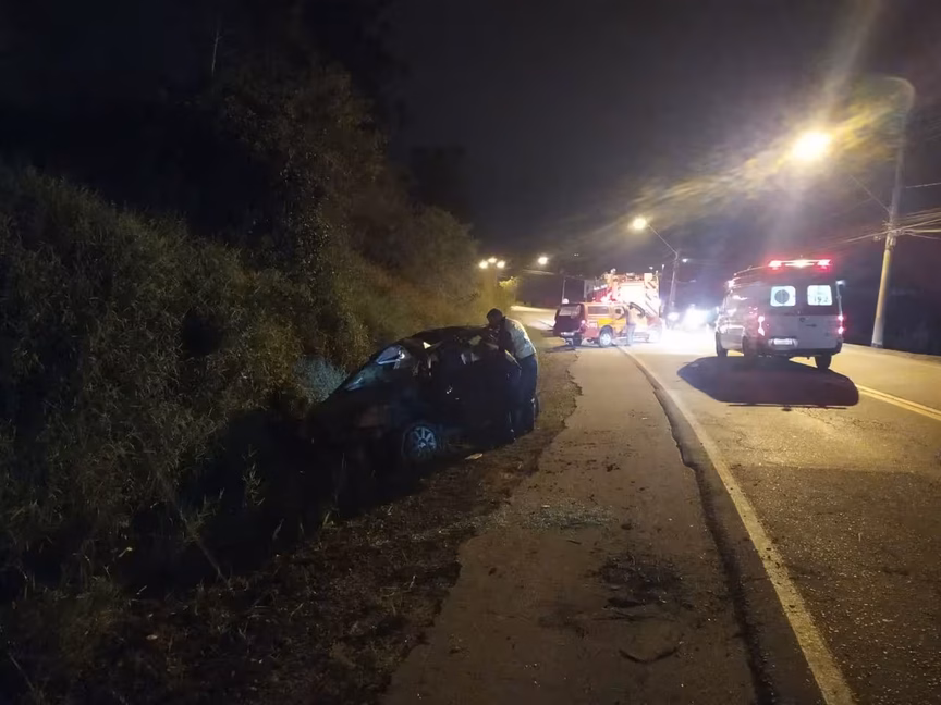 Um carro que transitava sentido Brusque a Gaspar saiu da pista e capotou, deixando três pessoas feridas na noite deste domingo, 26, na rodovia Ivo Silveira (SC-108), em Brusque.