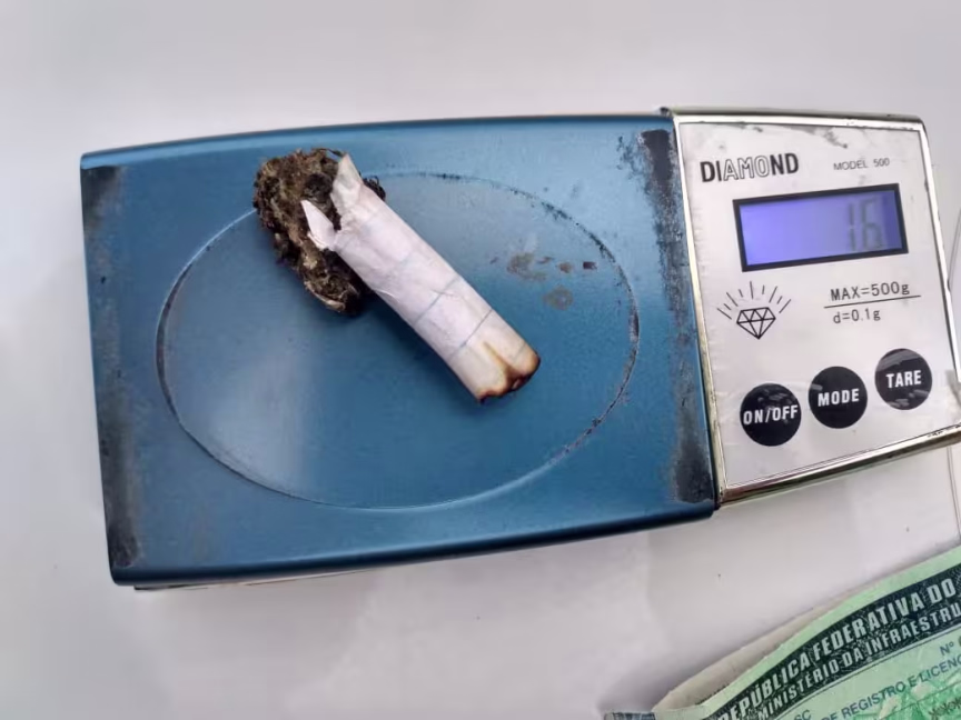 Dentro do carro os policiais encontraram um cigarro de maconha, com aproximadamente 1,5 grama. Ele confirmou que estava usando o entorpecente enquanto dirigia, mas se negou a realizar o teste clínico.