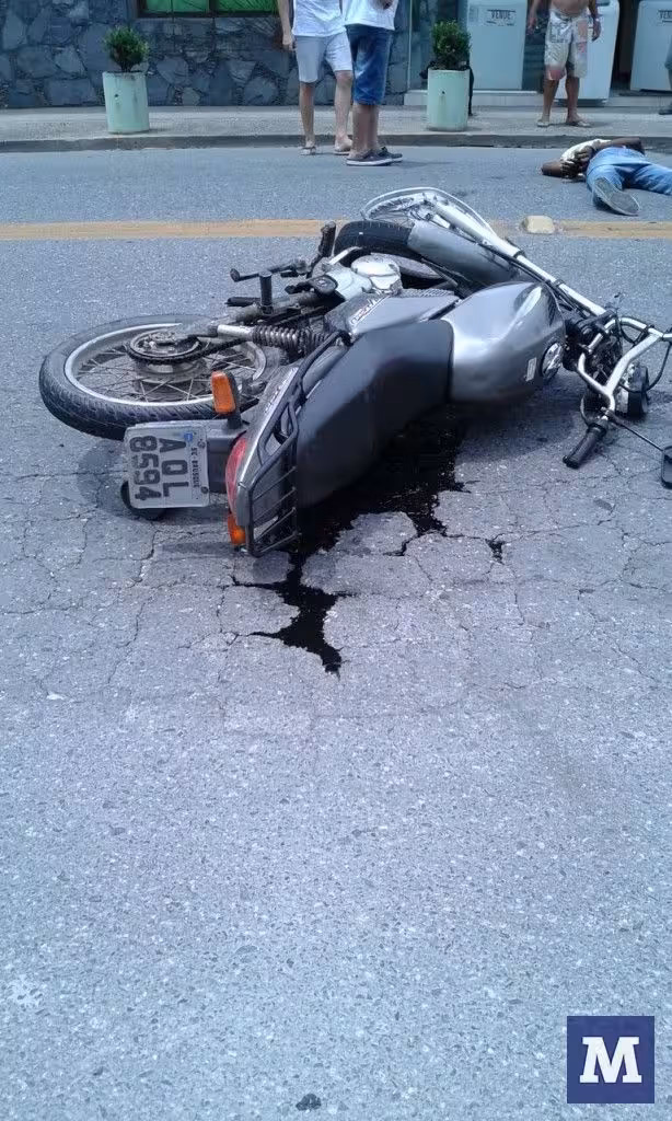 O motociclista Fabiano Ribeiro da Fonseca, 30, sofreu uma grande laceração na perna direita e ferimentos no braço direito.
