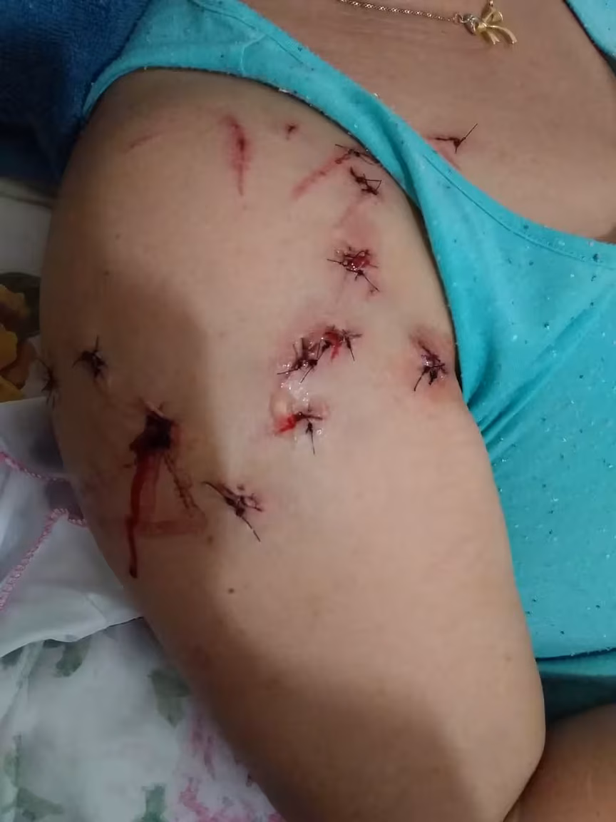 Apesar da quantidade de ferimentos, eles foram leves e ela já esta em casa se recuperando