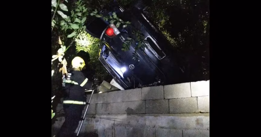 Um motorista de 35 anos ficou ferido após o carro que ele conduzia sair da pista, invadir o pátio de uma residência, capotar em um barranco e ficar escorado em uma árvore no Souza Cruz, em Brusque, na noite desta terça-feira, 5.