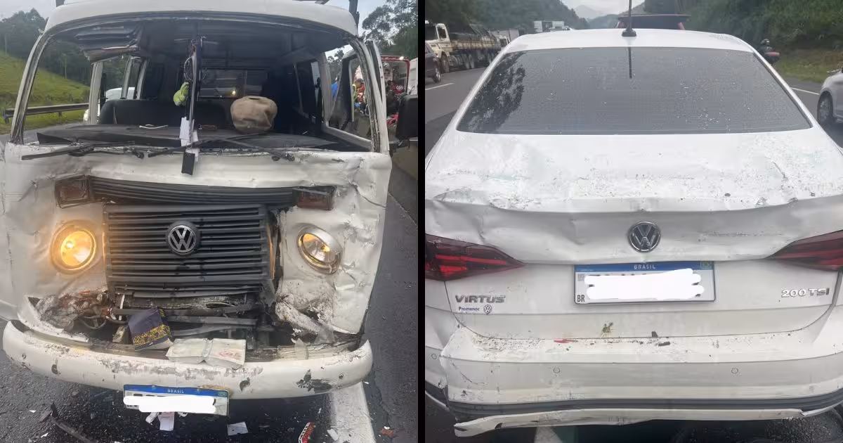 Uma colisão entre uma kombi e um Volkswagen Virtus foi registrada na BR-101, em Balneário Camboriú, na manhã desta quinta-feira, 25. O acidente aconteceu por volta das 7h40 no quilômetro 128.