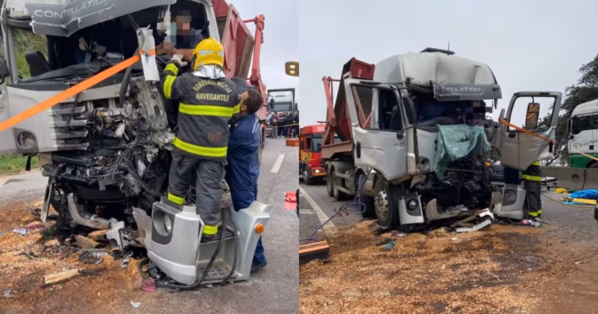 Segundo o Corpo de Bombeiros Militar, o motorista, de 49 anos, colidiu na traseira de outro caminhão que estava à sua frente. Com isso, ficou preso às ferragens, tendo a perna e pé presos pela estrutura, além do abdome comprimido pelo volante.