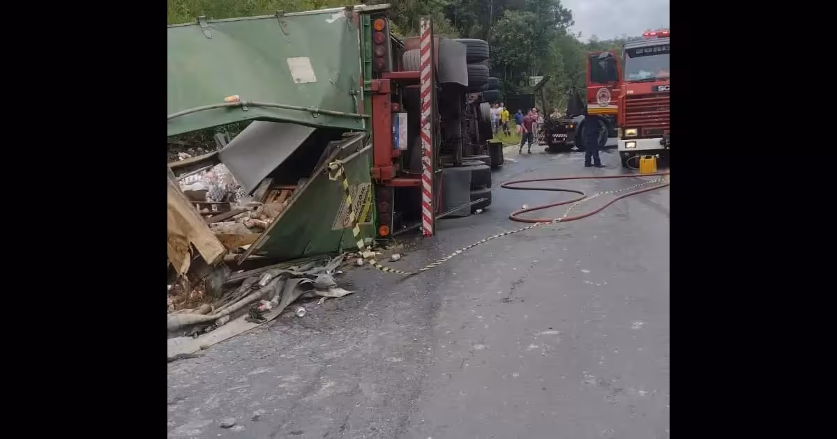Por volta das 9h desta terça-feira, 27, uma carreta com carregamento de bebidas tombou na BR-470, em Pouso Redondo, no Vale do Itajaí. O motorista morreu no local.