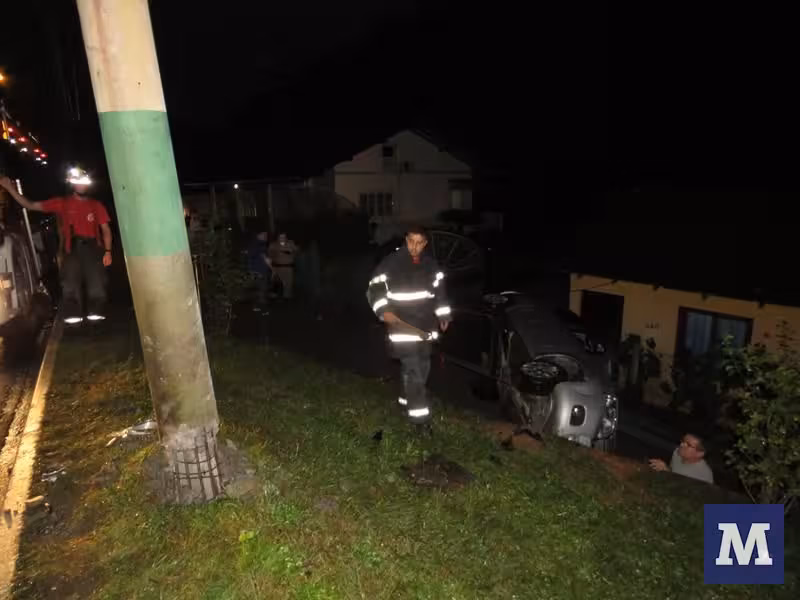 Motorista perde controle, bate em poste e tomba em barranco, no Dom Joaquim