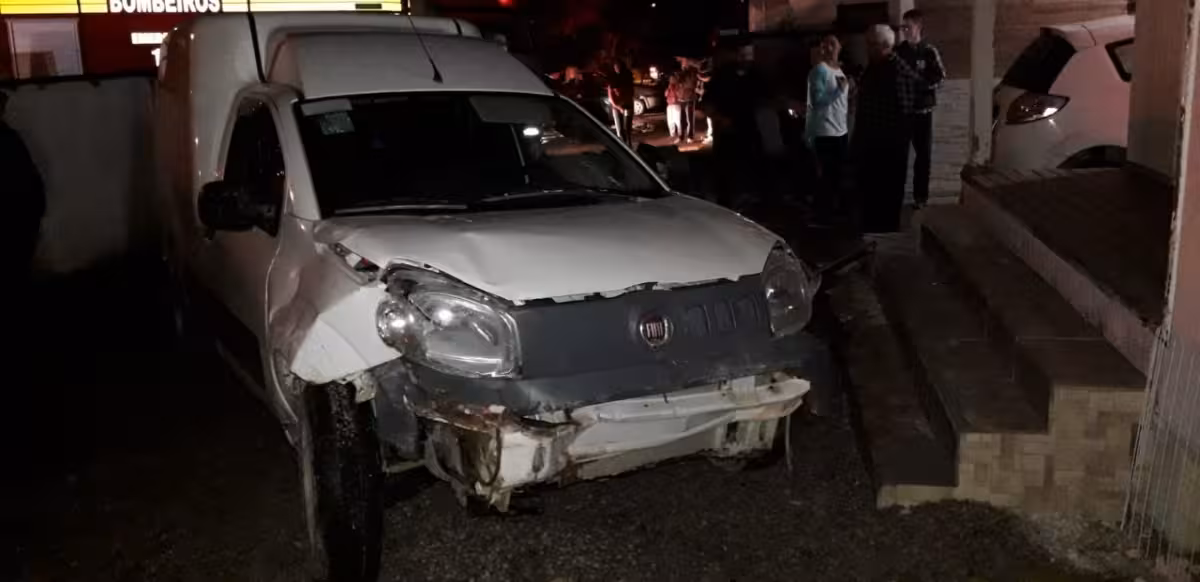 O motorista de uma Fiorino invadiu o quintal de uma casa após sofrer um mal súbito no volante. O veículo saiu da pista, derrubou um muro e foi parar dentro do terreno. O acidente ocorreu pouco antes das 19h desta terça-feira.