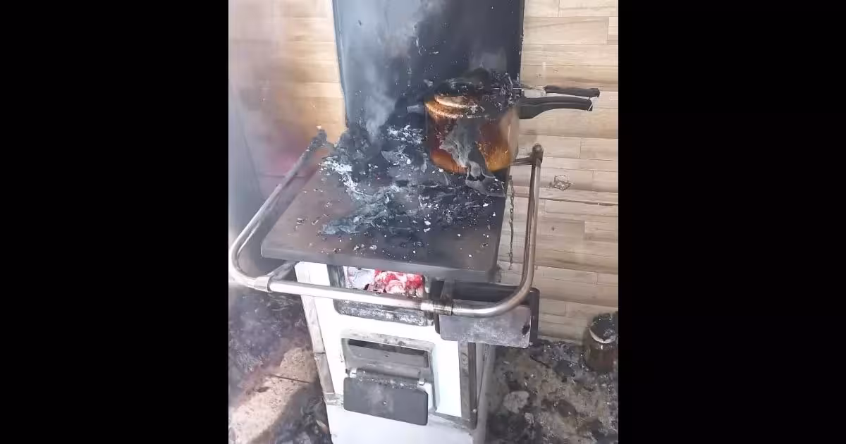 Mulher deixa fogão aceso, vai buscar filhos na escola e cozinha pega fogo no Planalto Norte