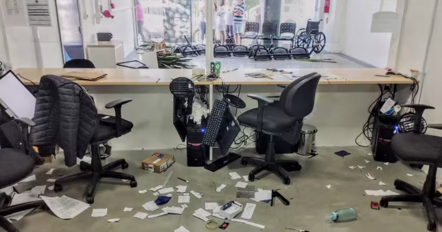 Após a recusa, a mulher ficou extremamente agressiva, revirando todo o local, destruindo móveis, computadores, filtros d’água e demais itens, além de agredir funcionários. Ela relatou aos policiais militares que teve um ataque de nervosismo após ficar três dias sem seu remédio.