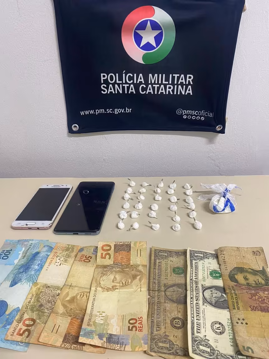 No carro, os policiais encontraram dois celulares e objetos pessoais. Na bolsa da motorista, encontraram R$ 350, 2 dólares e 5 pesos argentinos.
