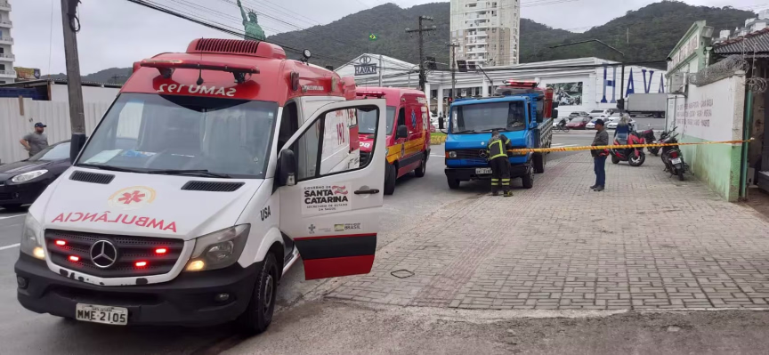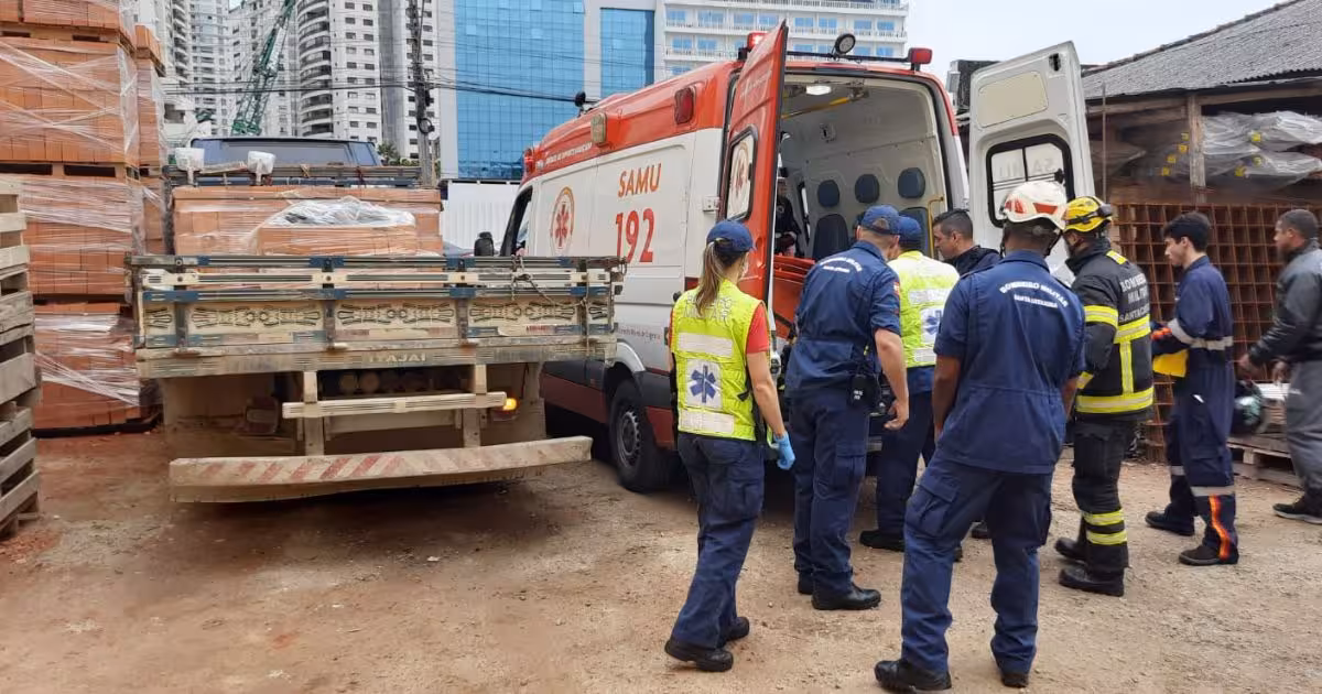 Homem é socorrido após ficar preso entre caminhão e pilha de tijolos em Itajaí