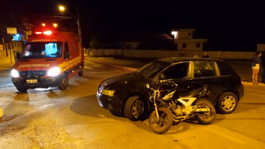Um acidente entre um carro e uma moto deixou uma pessoa ferida na madrugada desta terça-feira, 29. A colisão ocorreu na rua Poço Fundo, no bairro de mesmo nome. O Corpo de Bombeiros foi acionado por volta das 4h50.