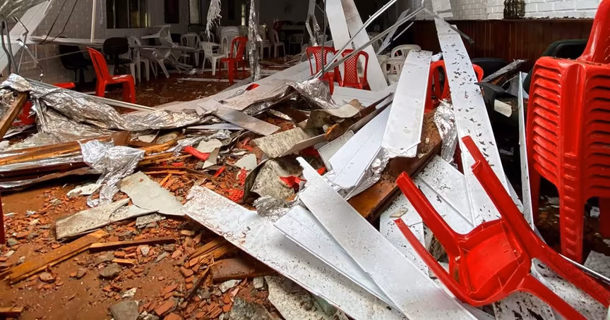 De acordo com o relatório do Corpo de Bombeiros, o acidente foi registrado na avenida Porto Alegre, no Centro de Chapecó. A parte da estrutura era feita de tijolos e caiu em uma edificação térrea, onde estava um grupo de pessoas rezando.