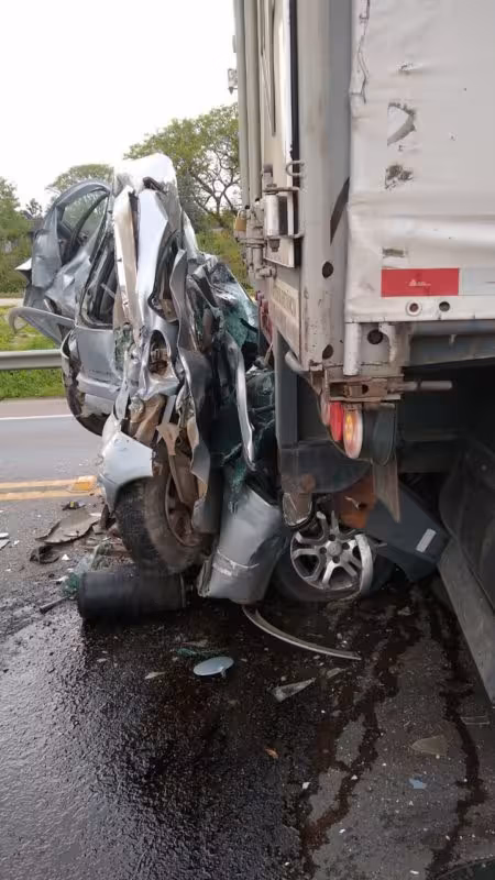 Momentos depois, às 15h51, duas carretas prensaram o automóvel das vítimas, que vieram a óbito no local.