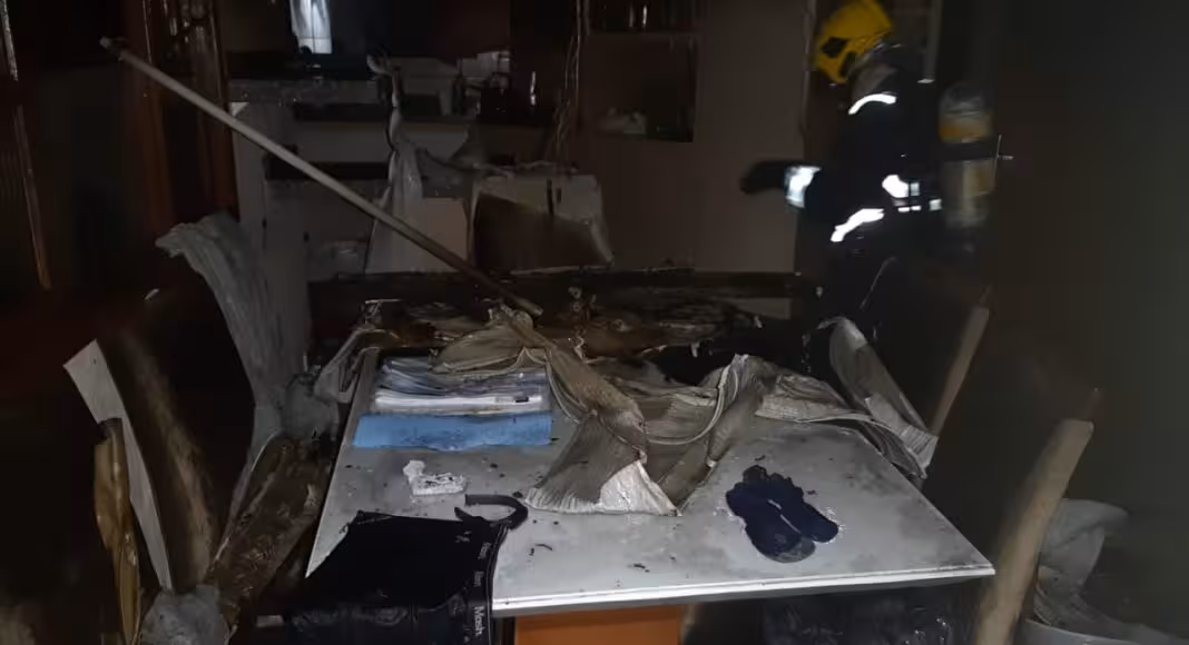 O incêndio foi iniciado no segundo andar da residência. Segundo o morador, ele estava cozinhando quando começou a sentir cheiro de fumaça vindo do quarto. Quando entrou no quarto viu sua cama pegando fogo e não soube explicar como iniciou.