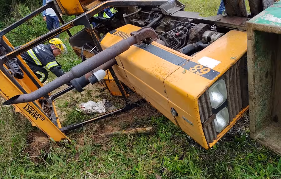 Ao chegar no local, eles encontraram uma máquina agrícola tombada na ribanceira com o condutor preso e morto embaixo do veículo. Segundo informações divulgadas pelos bombeiros, ele era o único ocupante na hora do acidente.
