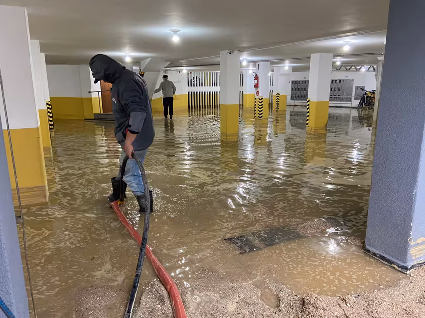 “Não deu tempo de salvar”: morador perde carro após estacionamento inundar por rompimento de tubulação no Centro de Brusque
