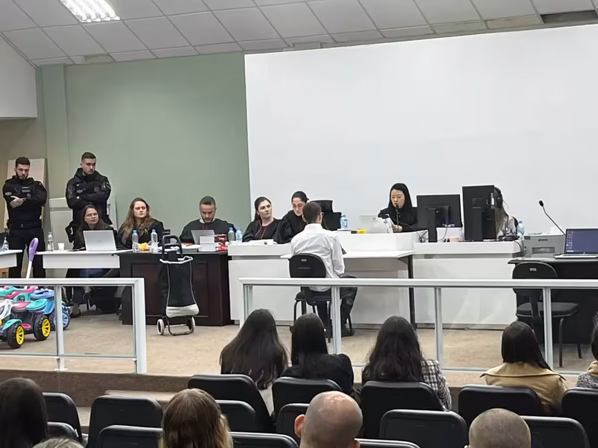 Na manhã desta quarta-feira, 26, iniciou o júri de Gleidson Tiago da Cruz, homem acusado de assassinar a facadas o vendedor de paçocas Giovane Ferreira da Silva de Oliveira, de 29 anos, em frente de um supermercado de Blumenau. O crime ocorreu em 3 de novembro de 2023. O julgamento segue em andamento.
