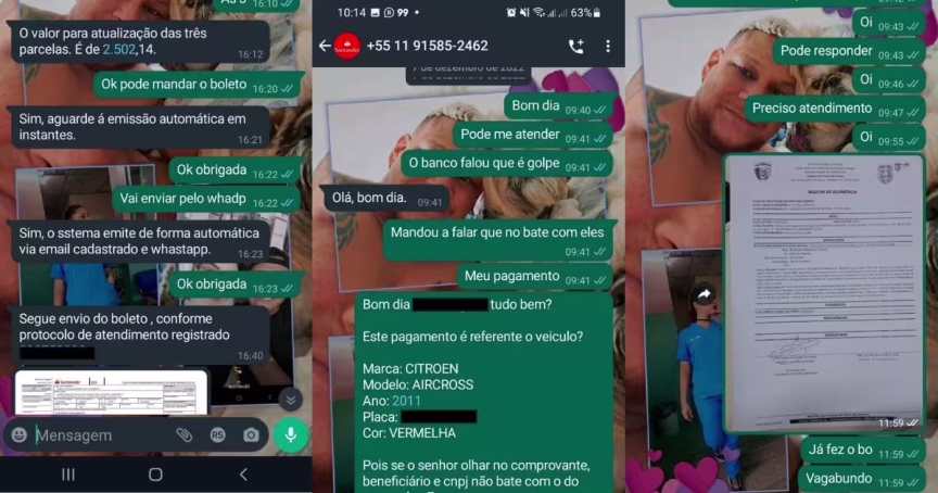 Questionados sobre como chegaram até os criminosos, disseram que foram procurar pelo número da financiadora na internet, porém, encontraram um outro contato que estava ali propositalmente para aplicar os golpes.
