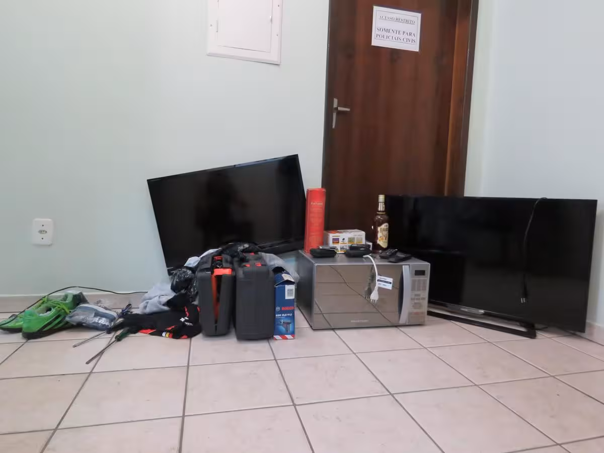 Foi recuperado dentro do veículo duas televisões, um forno micro-ondas, caixas de ferramentas, garrafas de bebidas, roupas e câmeras fotográficas. Os objetos foram apreendidos e entregues na Delegacia de Polícia Civil de Brusque.