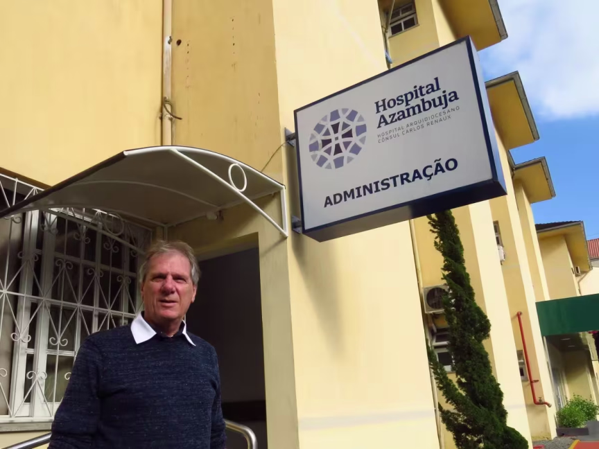 O supervisor de compras do Azambuja, Márcio Rugitzky, 65, trabalha há 45 anos no hospital. A família de Márcio estava em casa, porém, com a falta de comunicação, ele não sabia se a esposa e as duas filhas estavam bem.