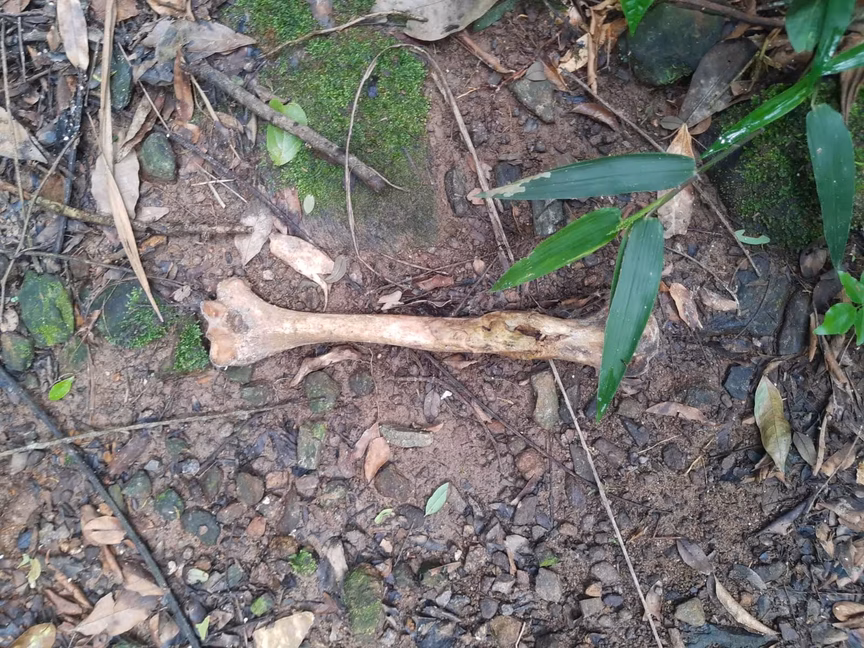 Segundo a PM, uma investigação em conjunto com a Polícia Civil foi realizada no local durante o dia, visto que o local tinha difícil acesso à noite. Os agentes entraram na mata fechada e depois chegaram a uma trilha, onde encontraram um crânio e, posteriormente, uma ossada humana em uma bicicleta com vários ossos espalhados pela mata.