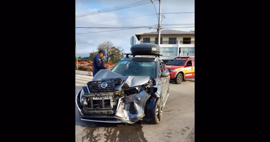 Apesar do susto, Evandro não ficou ferido. O carro ficou danificado, mas ele informou que tem seguro.