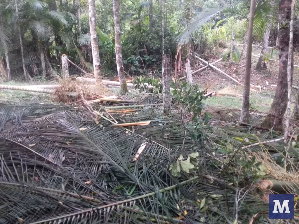 Criminosos levaram 50 cabeças de palmito e deixaram apenas as folhas da planta espalhadas pelo local