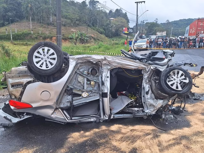 Mariana Barbieri, de 38 anos, de Gaspar, estava no carro Hyundai Creta que foi atingido durante o acidente. A colisão fez com que o veículo conduzido por Mariana capotasse na rodovia.