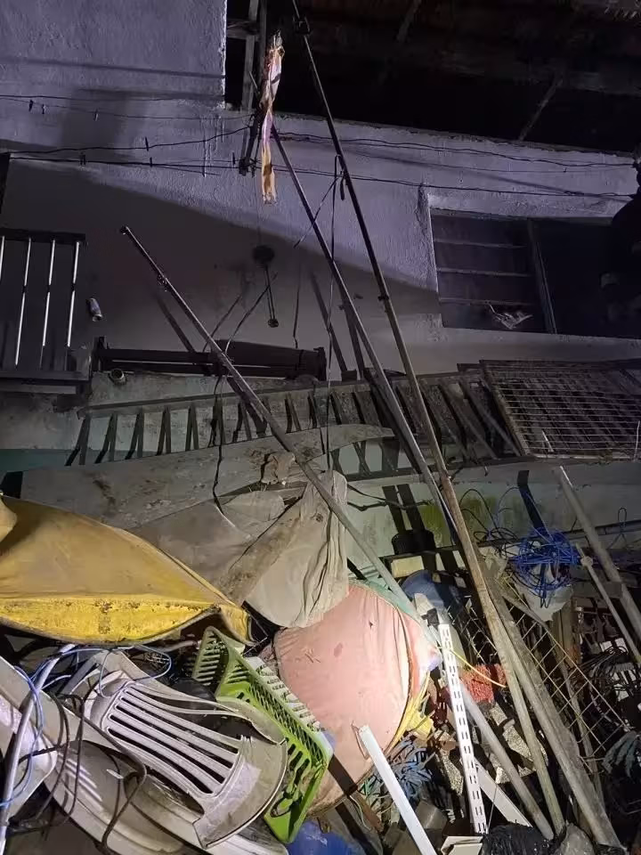 Foi necessário quebrar uma estrutura metálica para que a escada dos bombeiros alcançasse o local e a vítima pudesse sair.