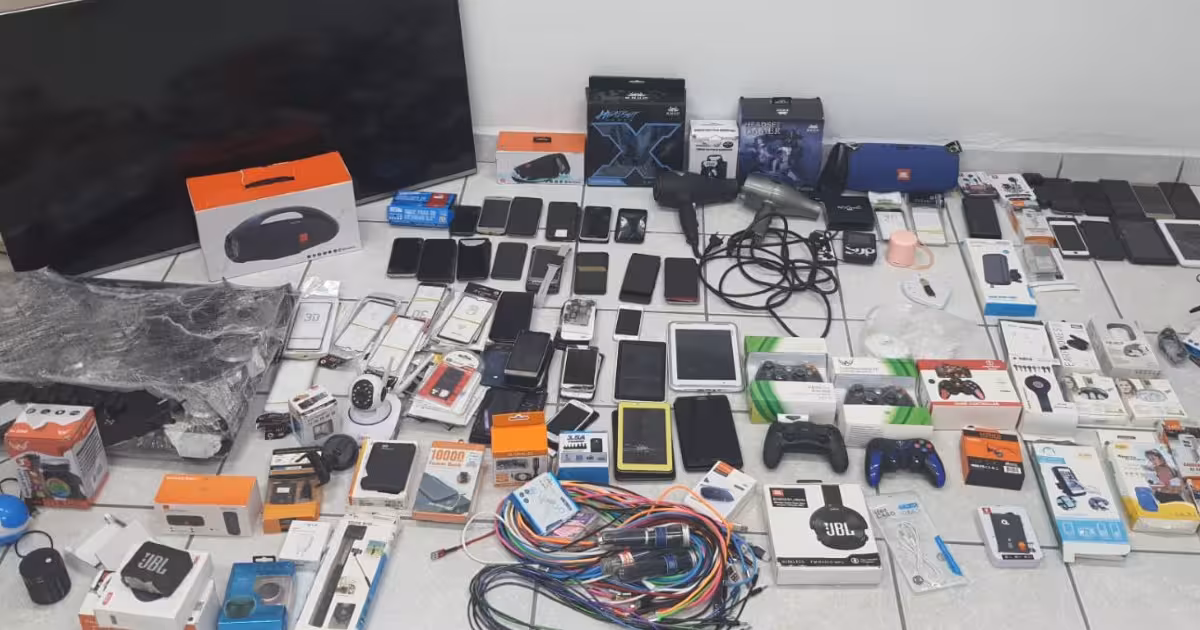 Foram apreendidos, dentre diversos aparelhos eletrônicos, 60 aparelhos celulares, os quais são provenientes do furto apurado.