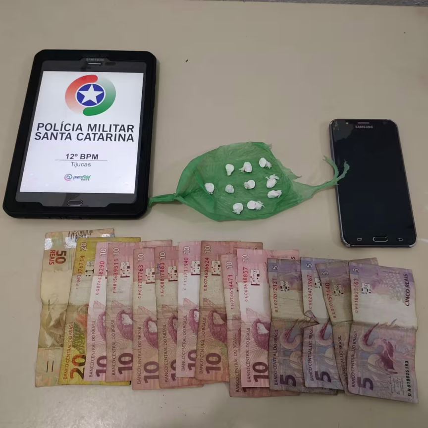 Na madrugada desta segunda-feira, 22, por volta das 0h30, Alisson Policarpo Silva, 18 anos, foi preso pela Polícia Militar por tráfico de drogas, em Tijucas.