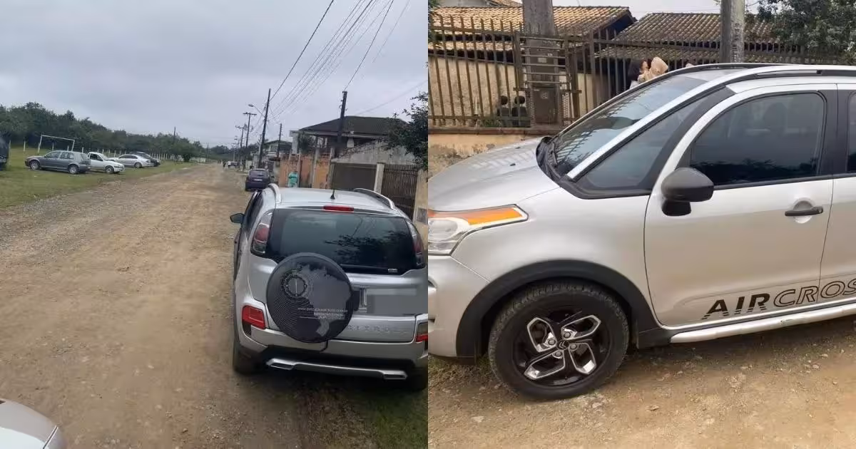 Neste momento, chegou uma vizinha no portão chamando o homem. Os assaltantes se assustaram e saíram pegando a chave do carro e levando o veículo, um Citroën C3.