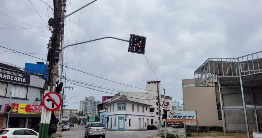 Prefeitura de Brusque instala semáforo em cruzamento no Centro; saiba motivo e quando ele deve começar a funcionar