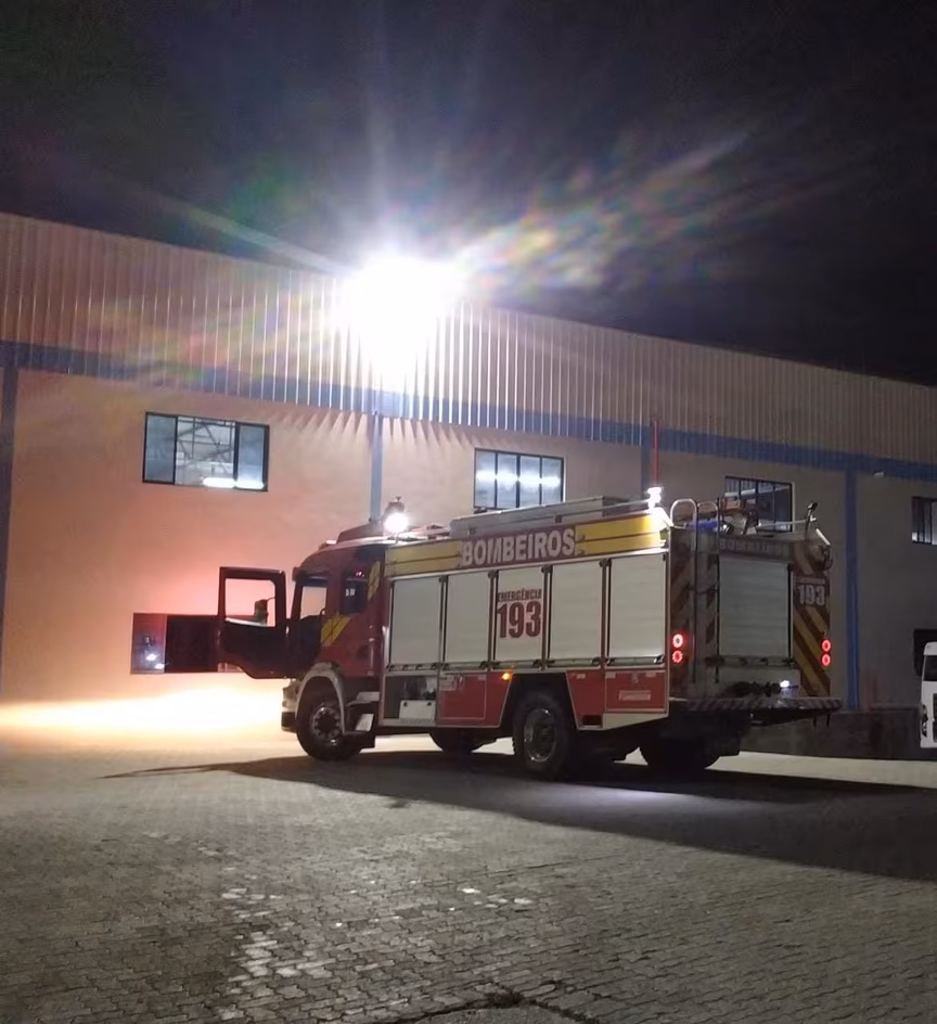 Quando a equipe chegou no local, a brigada de incêndio da empresa já havia controlado o princípio de incêndio utilizando 13 extintores de PQS e três extintores de CO2. Segundo o relatório dos bombeiros, o foco inicial do fogo atingiu um compressor de ar.