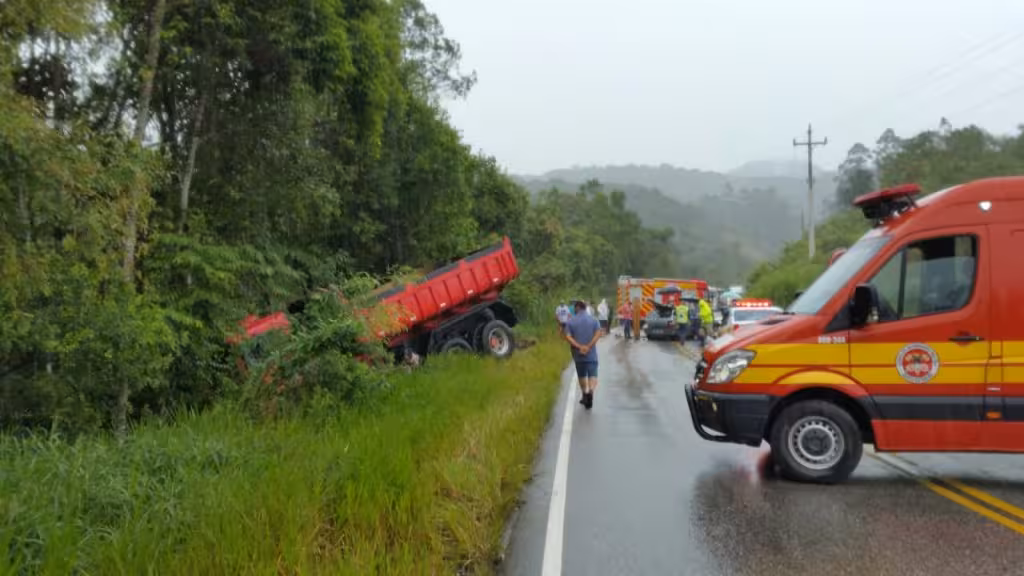 O motorista do Uno de Brusque não sofreu nenhum ferimento, assim como o da caçamba.