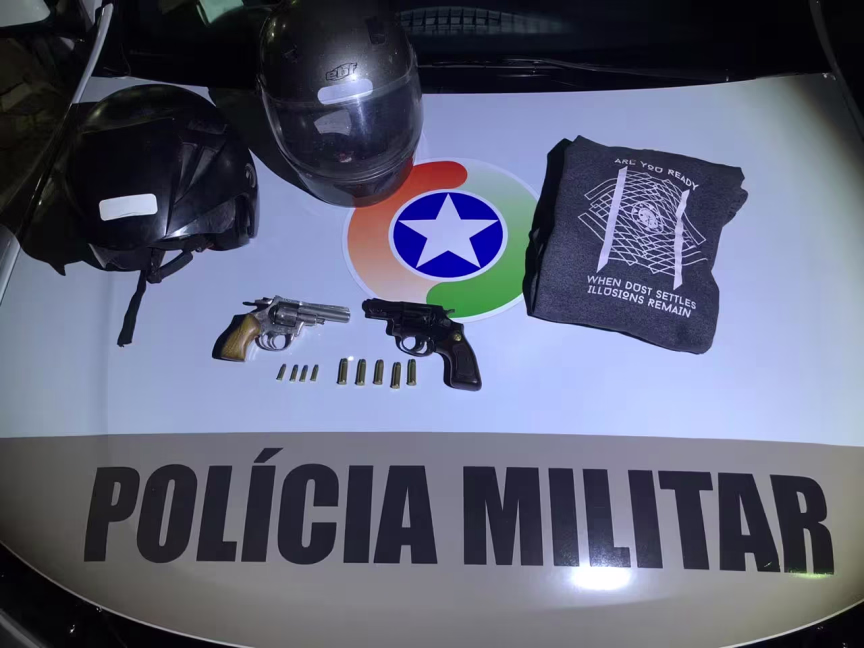 Após consultada a placa da motocicleta foi identificado o proprietário e o endereço. A Polícia Militar de Nova Trento se deslocou até a residência e encontraram duas armas de fogo reconhecidas posteriormente pelas vítimas como as que foram utilizadas na ação dos autores.