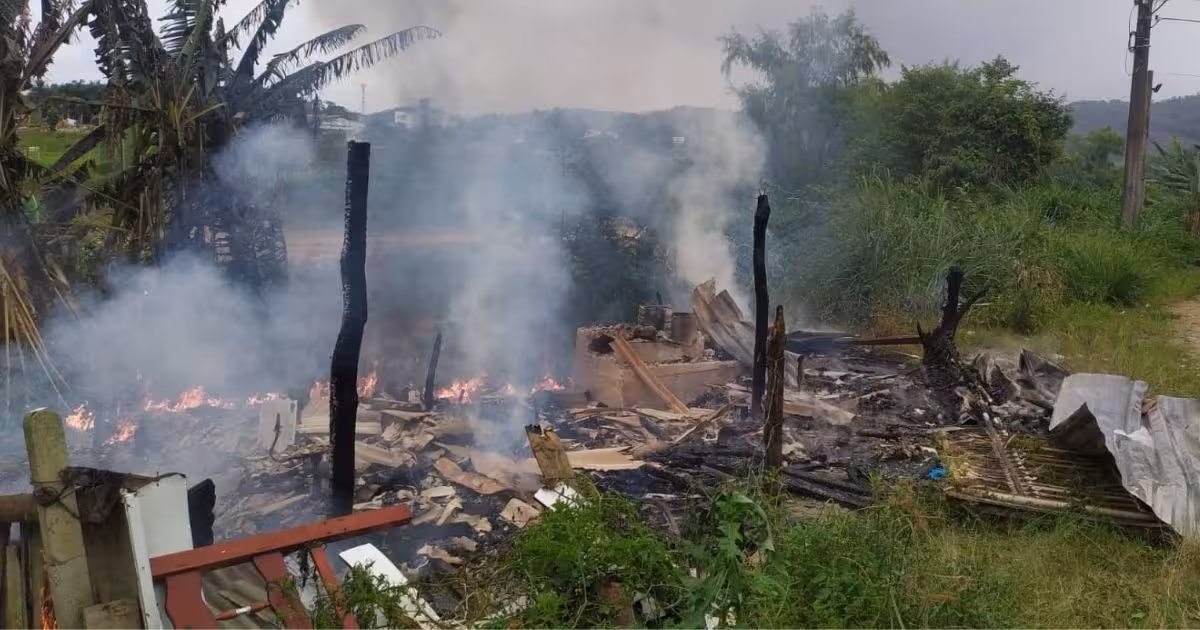 Rancho é destruído por incêndio no Bateas, em Brusque