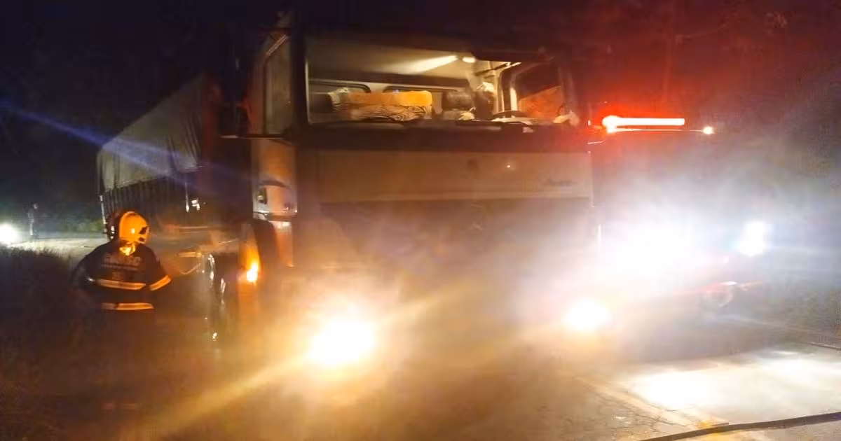 De acordo com o relato do motorista e do mecânico aos bombeiros, as rodas do caminhão estavam em chamas e, para controlar o fogo, utilizaram garrafas de água que estavam no interior do veículo.