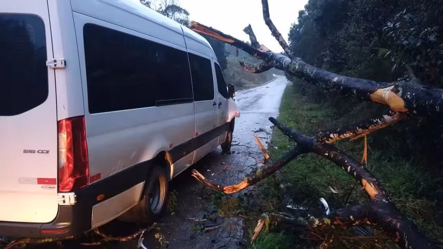 Por volta das 6h30 desta quarta-feira, 10, uma árvore caiu sobre uma van na SC-120, altura do KM 201, em Curitibanos. O veículo, da Prefeitura de Lebon Régis transportava pacientes da Saúde. Apenas danos materiais foram registrados.