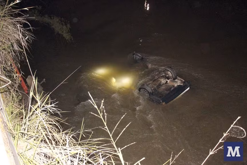 Santana cai no rio Itajaí-Mirim com duas pessoas, mas só uma consegue sair do veículo