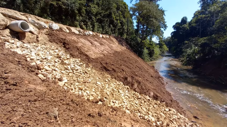 No local, foi feita a sustentação da margem da via com pedras. Com a conclusão da obra, o trânsito também foi liberado, e o recapeamento asfáltico deve ocorrer nos próximos dias.