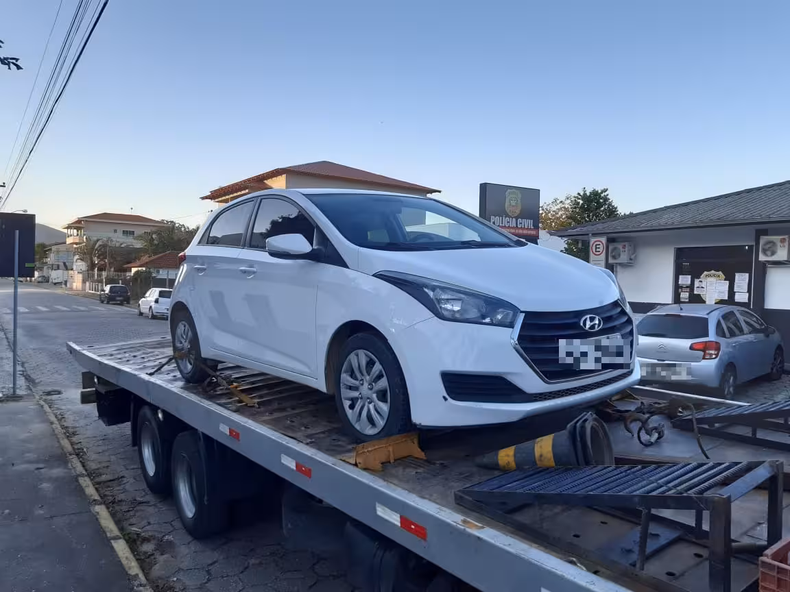 Os policiais consultaram no sistema e viram que veículo foi roubado no dia 3 de junho, em Penha. O proprietário do Hyundai HB20 Branco relatou no boletim de ocorrência que havia sido assaltado a mão armada.