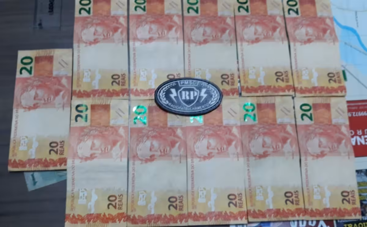 Com o homem foram encontradas 11 notas falsas, totalizando R$ 220. Em consulta ao sistema, os policiais verificaram que a moto estava com placa de outro veículo.