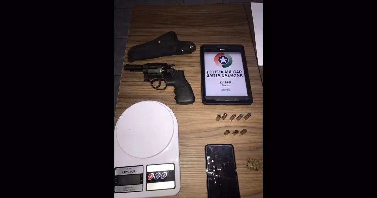 A arma estava com a numeração suprimida e com cinco munições intactas. Na casa dele, foram encontradas em uma gaveta três munições deflagradas, maconha e uma balança de precisão.