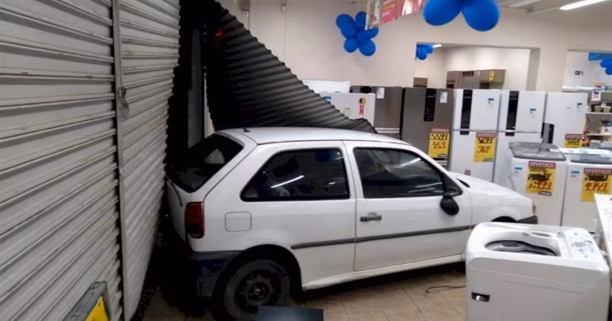 Suspeitos invadem loja com carro em Santa Catarina e furtam produtos