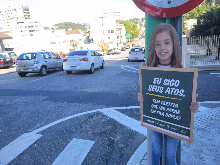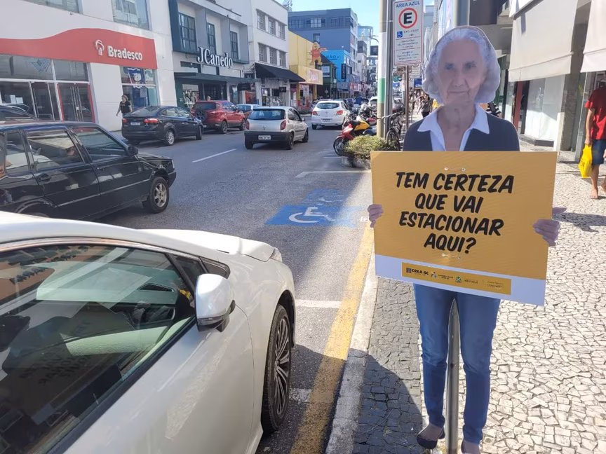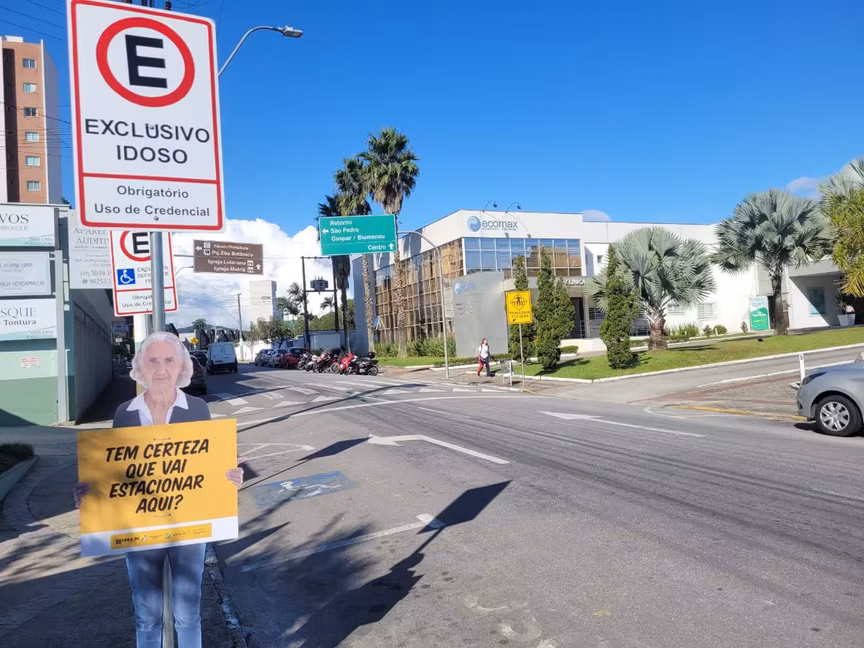 “Tem certeza que vai estacionar aqui?”: placas de conscientização no trânsito são instaladas em Brusque