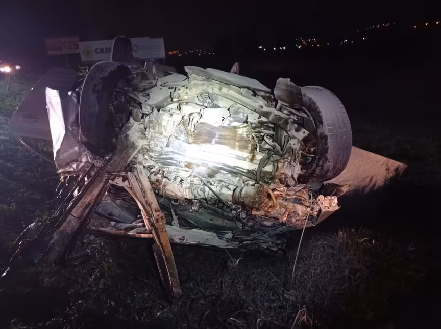 Segundo a PRF, aparentemente os dois estavam sem cinto de segurança. Como o veículo capotou, não foi possível identificar quem estava conduzindo o carro.